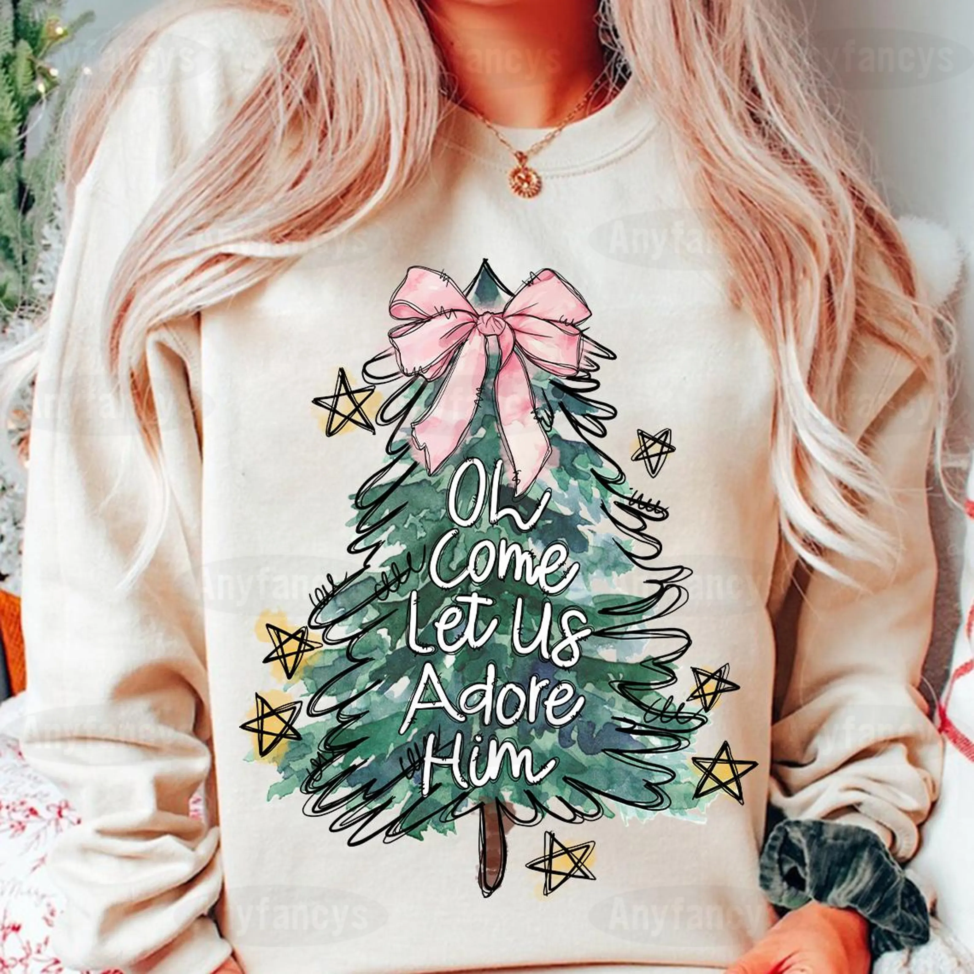 Oh Come Let Us Adore Him Coquette Christmas Tree Tee/Sweatshirt/Hoodie