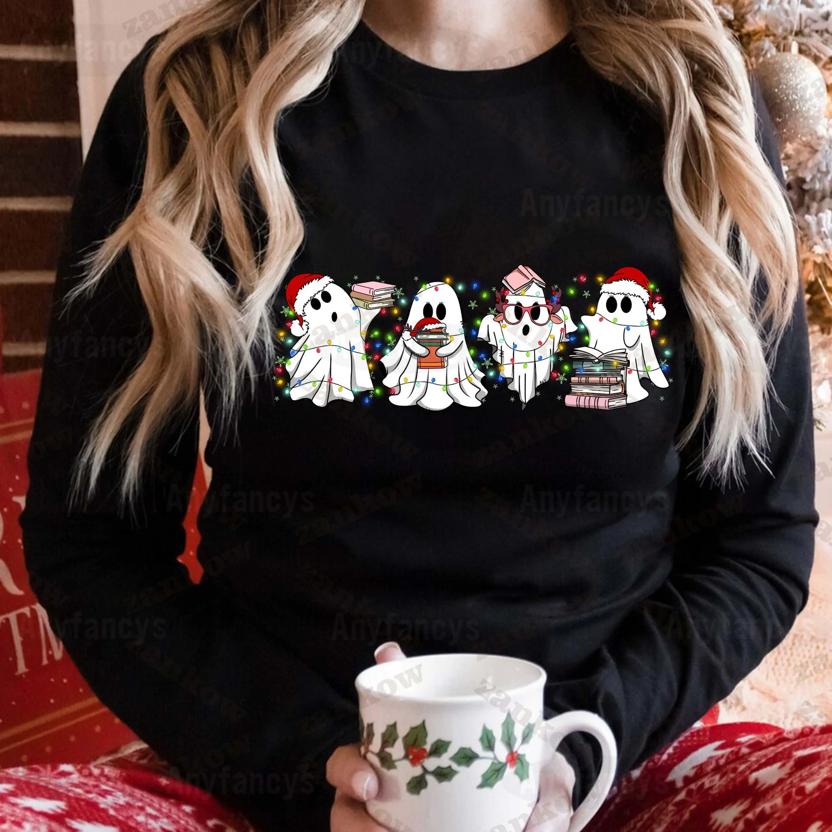 Funny Book Lover Christmas Cute Ghost Book Nerd Tee/Sweatshirt/Hoodie