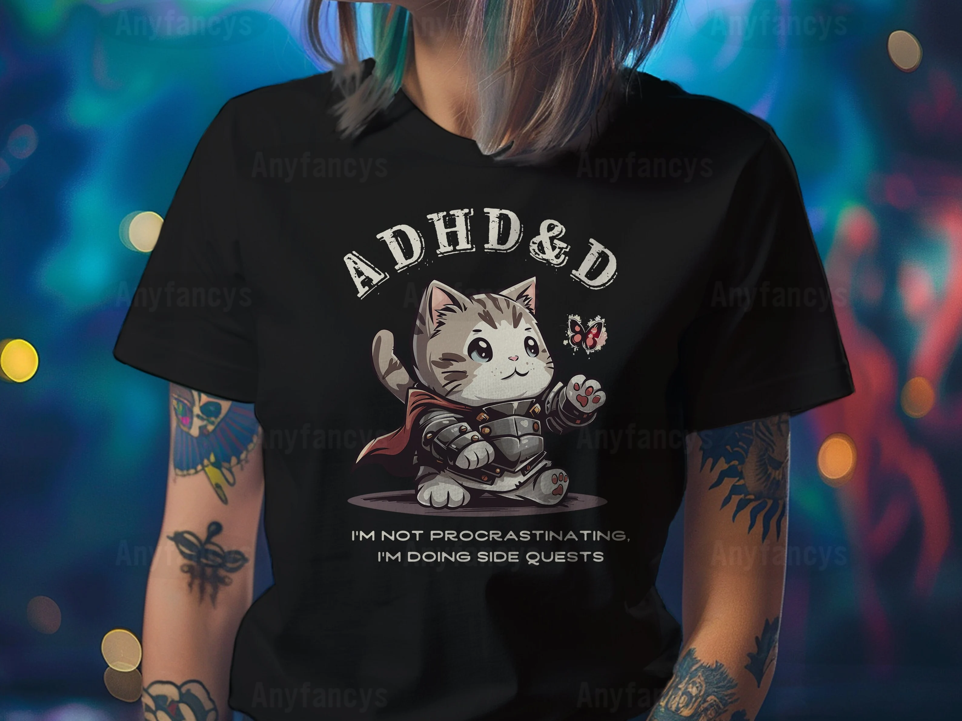 Dungeons and Dragons ADHD&D I'm Not Procrastinating I'm Doing Side Quests Cat T-shirt/Crewneck/Hoodie