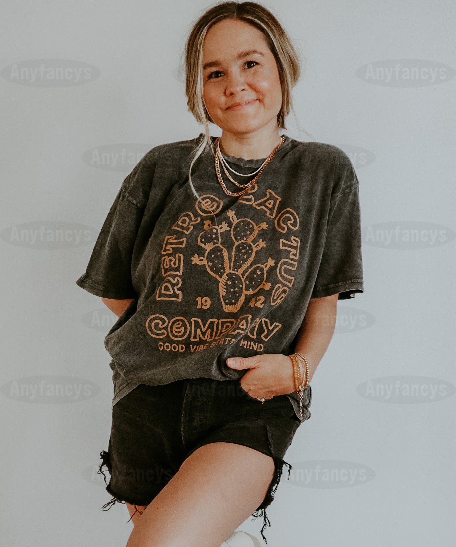 Retro Cactus 90s Oversized Tee - Smoke